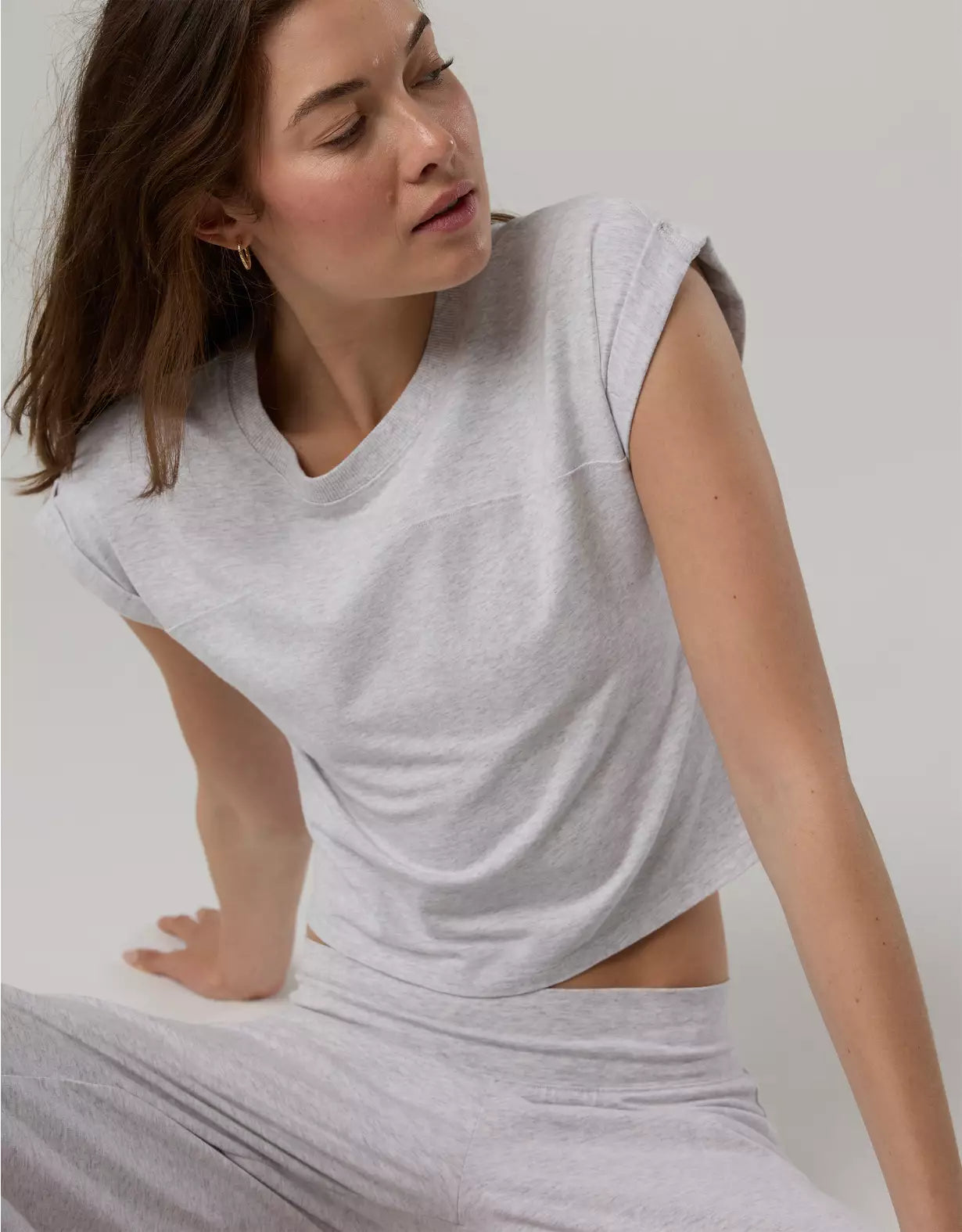 Cut from soft, lightweight stretch jersey, this two-piece brings a clean, minimalist feel to laid-back dressing. The cropped tee features rolled sleeves and a relaxed fit, while the matching wide-leg pants elongate the silhouette with a smooth high waistband.