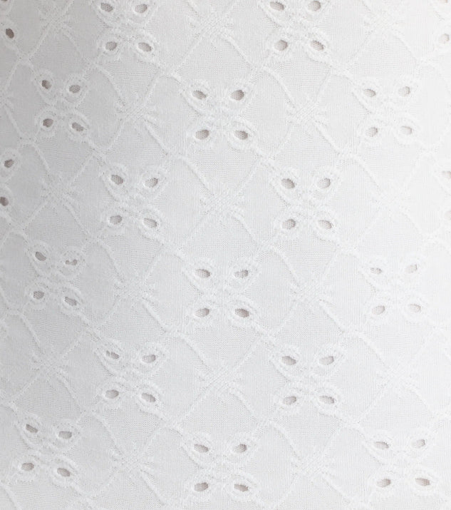 Featuring puff sleeves, a fitted bodice, and a triple-tiered mini skirt, this dress brings a touch of vintage sweetness with a modern edge. The embroidered eyelet fabric keeps it light and breathable, while the smocked back gives the perfect snug fit.