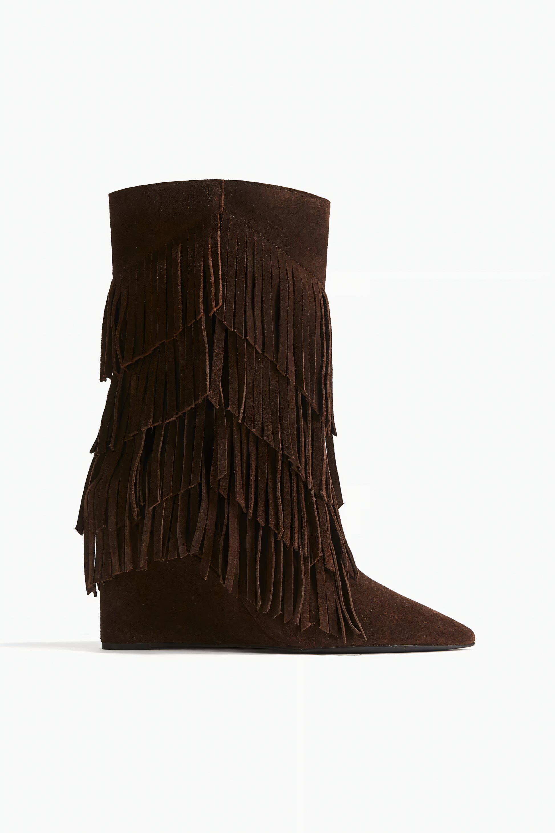 Fringe-trimmed suede boots